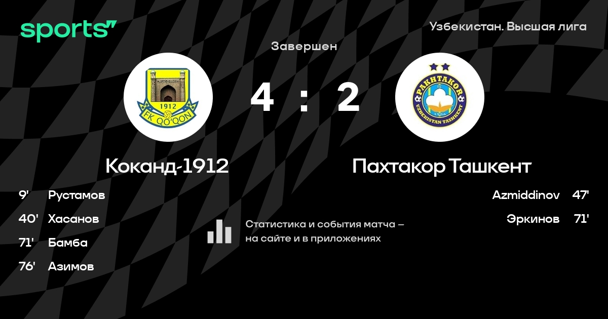 Коканд-1912 – Пахтакор Ташкент: Пахтакор Ташкент забивает в 16 последних матчах против этого соперника