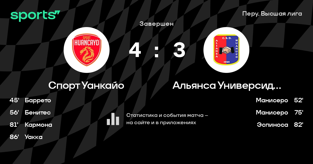 Трансляция Спорт Уанкайо - Альянса Универсидад