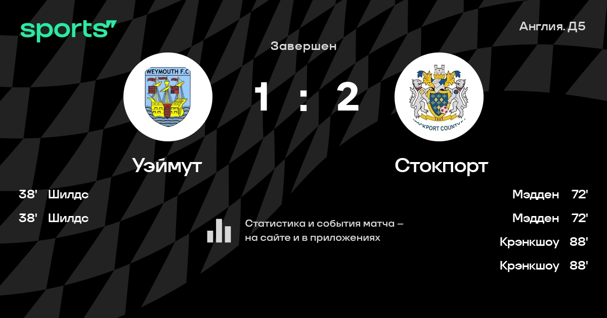 В последних 5 играх Уэймут забивает в среднем 1.80 гола за игру