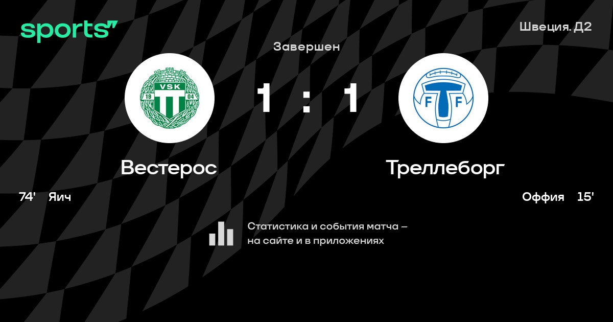 Результат прошлой игры в турнире «Швеция. Д2»: Треллеборг – Васалунд 1:2. После 28 туров Треллеборг набирает 42 очков и занимает 6 место в турнире. Лучший бомбардир команды – Петар Петрович: он забил 5 в 10 матчах. В 5 последних матчах в турнире «Швеция. Д2» Треллеборг обязательно забивает. В последних 5 играх Треллеборг забивает 10 голов. В последних 5 играх Треллеборг пропускает 9 голов.
