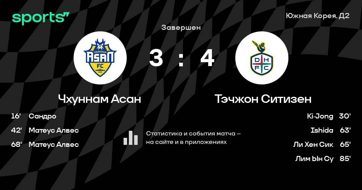 Чхуннам Асан – Тэчжон Ситизен: Тэчжон Ситизен забивает в 14 последних матчах против этого соперника