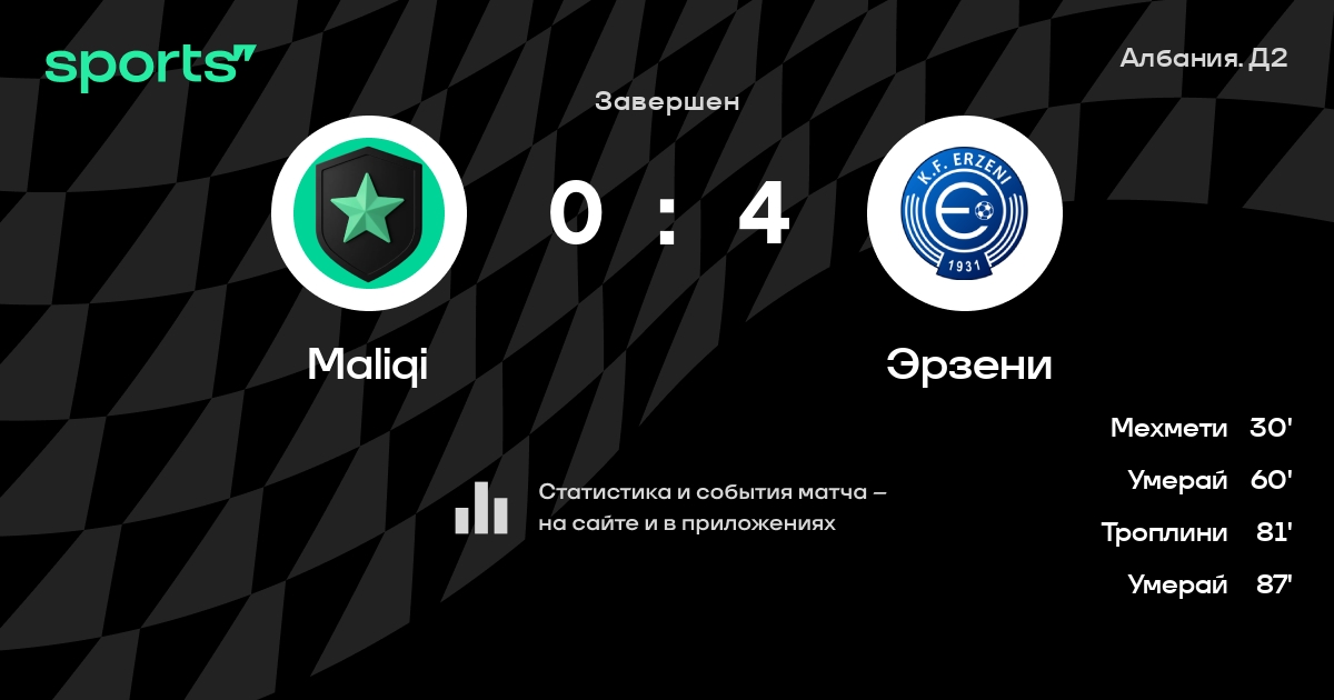 В последних 5 играх Maliqi забивает в среднем 0.80 гола за игру