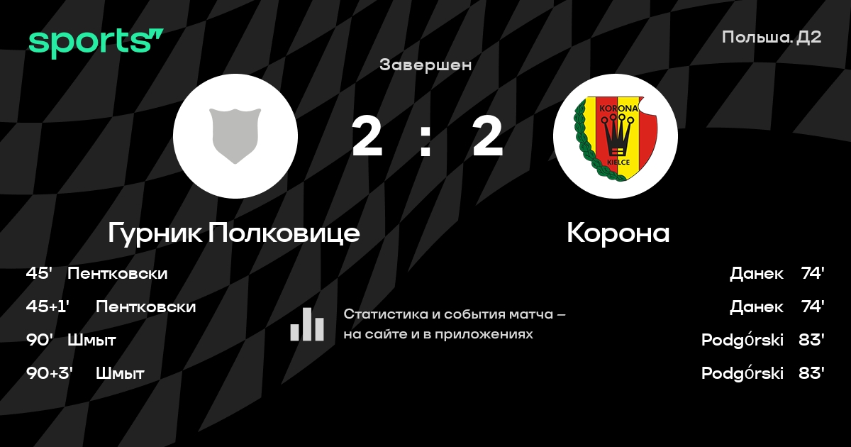 Корона не проигрывает в 5 последних матчах в гостях в турнире «Польша. Д2»