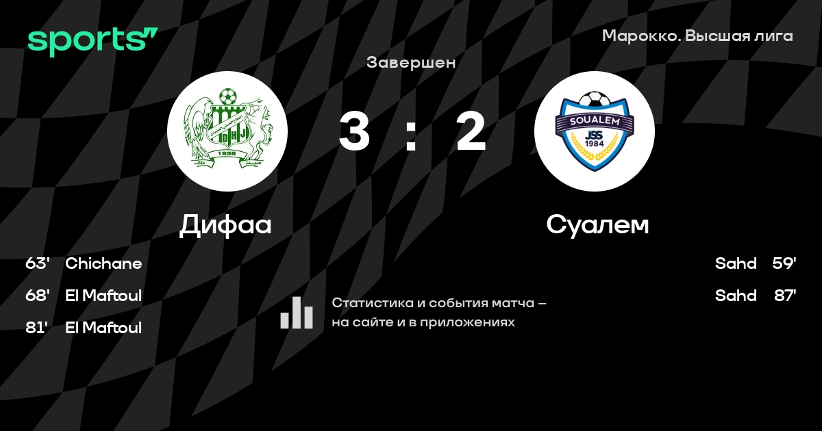 Hicham El Allouch - Mohamed Kandil, Redouane Karoui, Yassine Kordani, Эль-Хашими - Hicham El Alaoui Marzak, Amine El Msane, Anas Sabih - Joulale, El Bahja, Mustapha SahdЗапасные: Afandi, Erbibi, Benlamachi, Mouhtadi, Aznag, Ghazouani, Fryi, Муауи, Benrabha