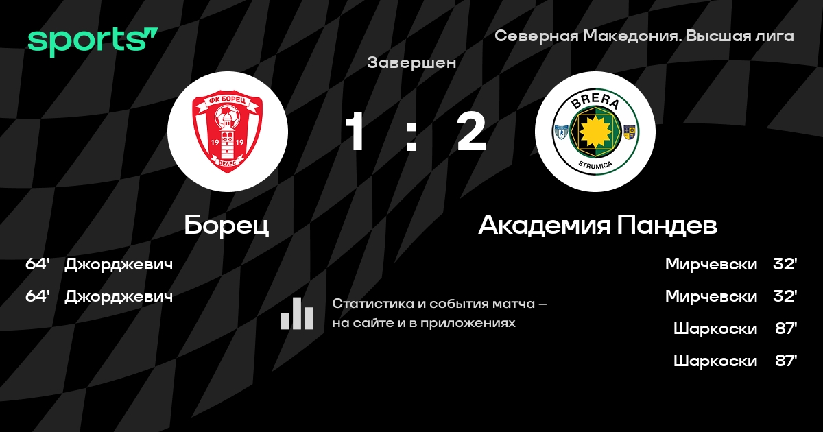 Борец – Академия Пандев: Академия Пандев побеждает в 3 последних очных матчах