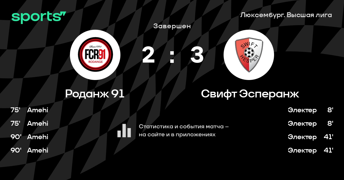 Роданж 91 – Свифт Эсперанж: Роданж 91 забивает в 8 из 10 последних матчей против этого соперника