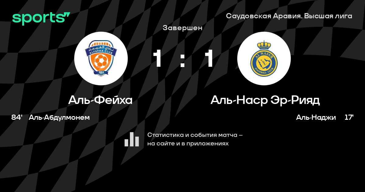 Аль-Фейха – Аль-Наср Эр-Рияд: Аль-Наср Эр-Рияд побеждает в 4 последних очных матчах