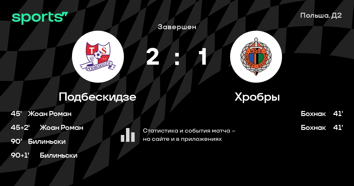 Подбескидзе – Хробры: коэффициенты