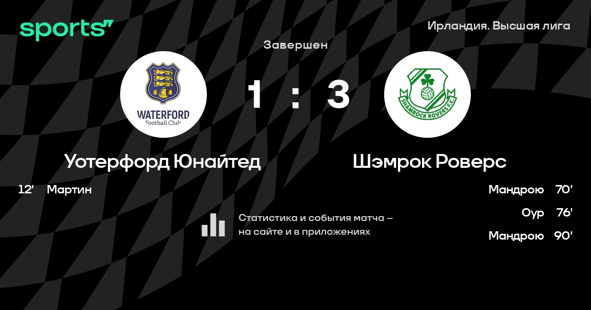 Уотерфорд Юнайтед – Шэмрок Роверс: Шэмрок Роверс побеждает в 5 последних очных матчах