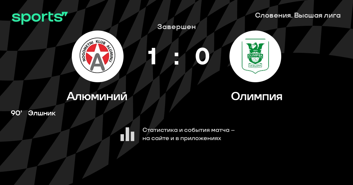 Алюминий – Олимпия: Алюминий не проигрывает в 5 из 7 последних матчей против этого соперника дома в турнире «Словения. Высшая лига»