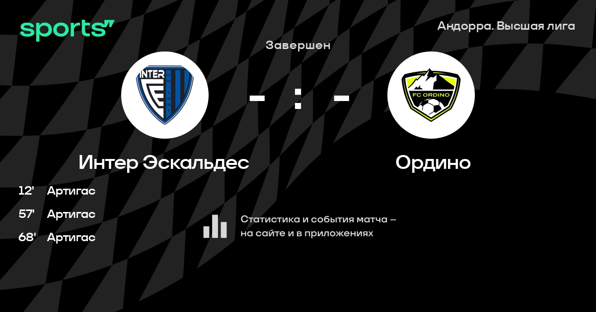 | 1 | Интер Эскальдес | 27 | 14 | 8 | 5 | 54 | 24 | +30 | 50 | ||