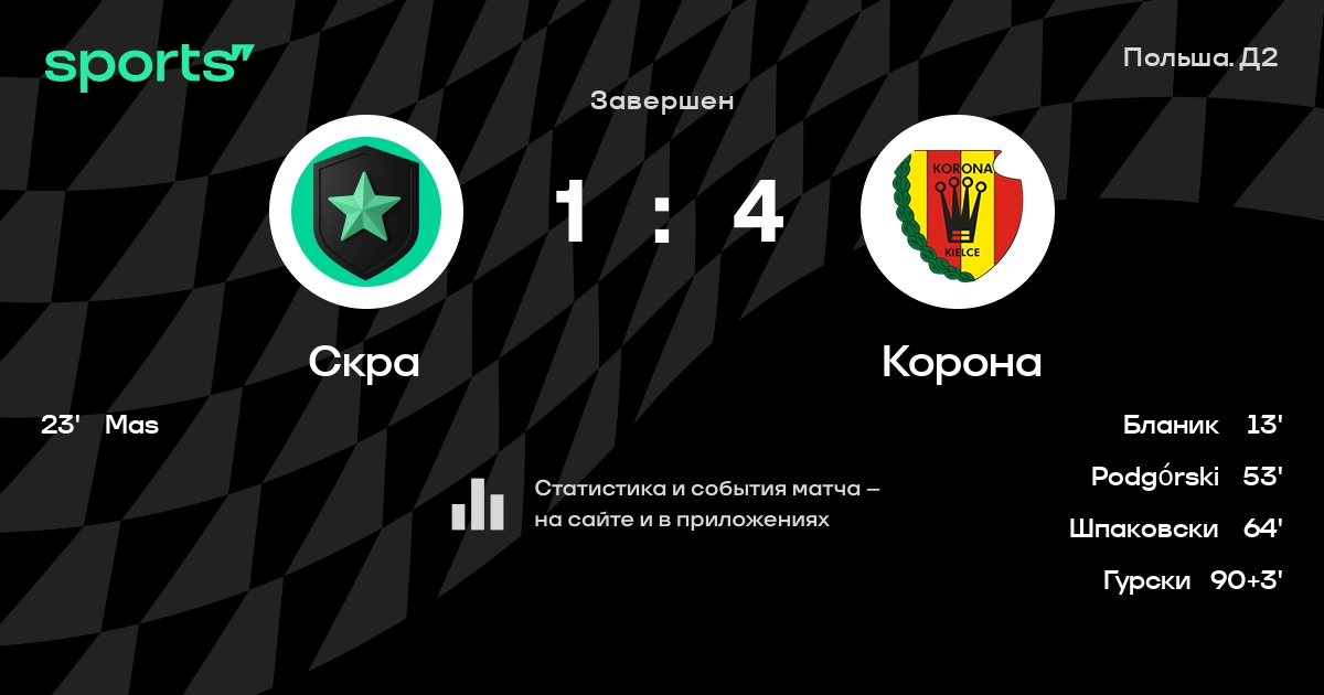 Корона не проигрывает в 6 из 7 последних матчей в гостях в турнире «Польша. Д2»