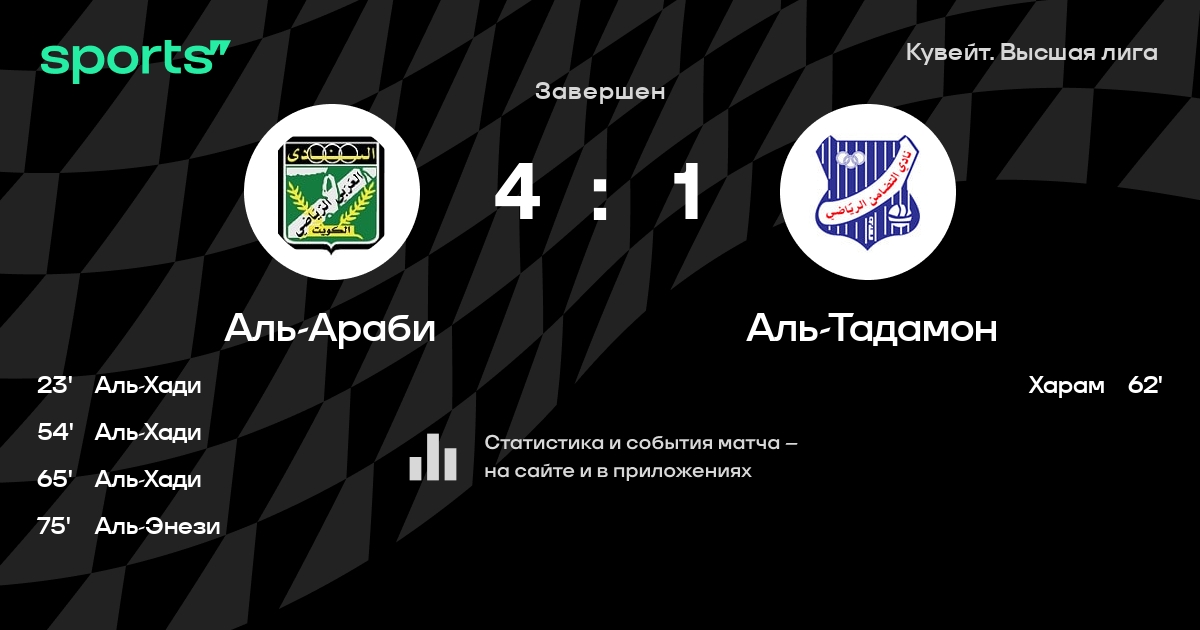 Аль-Араби – Аль-Тадамон: Аль-Араби забивает в 26 последних матчах против этого соперника