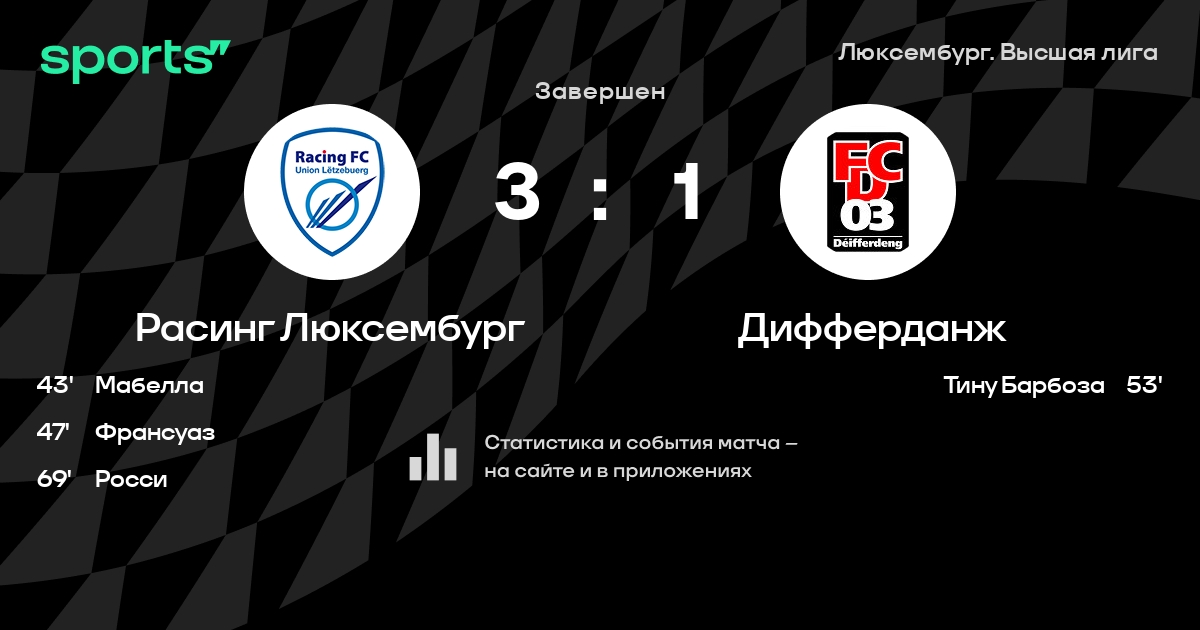 Расинг Люксембург – Дифферданж: Дифферданж забивает в 5 из 7 последних матчей против этого соперника