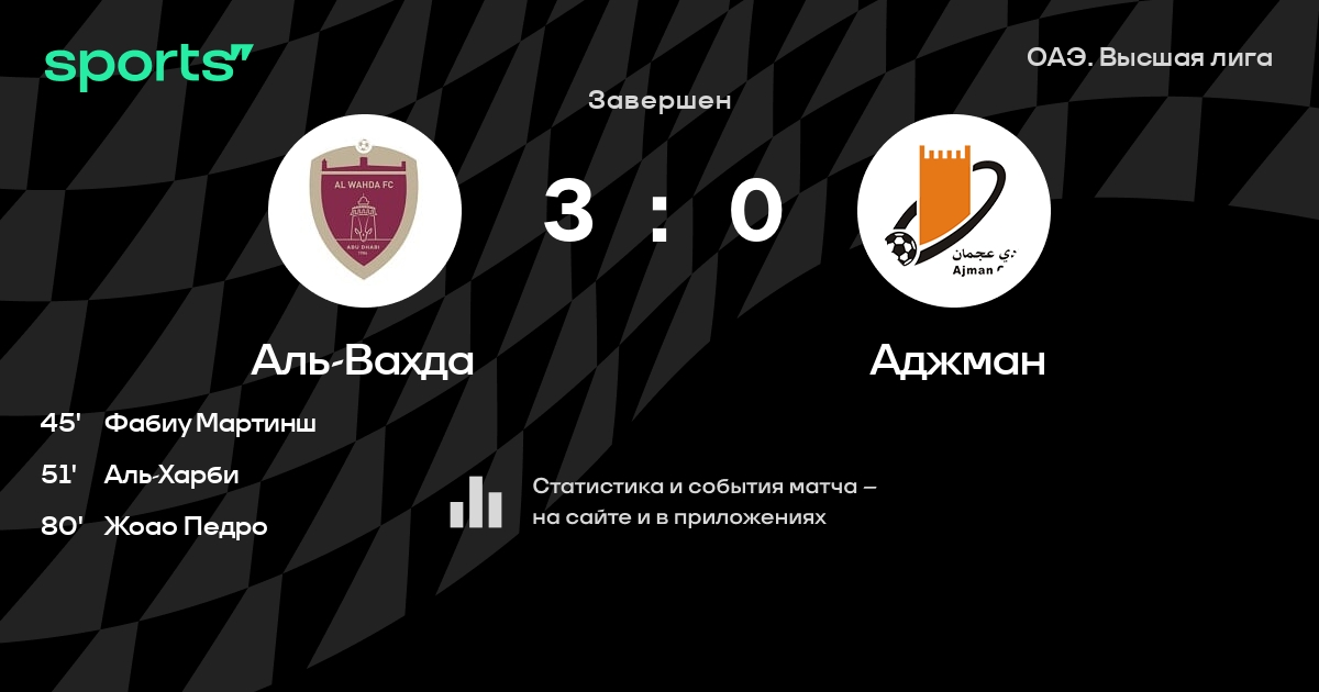 Аль-Вахда – Аджман: Аль-Вахда забивает в 23 последних матчах против этого соперника