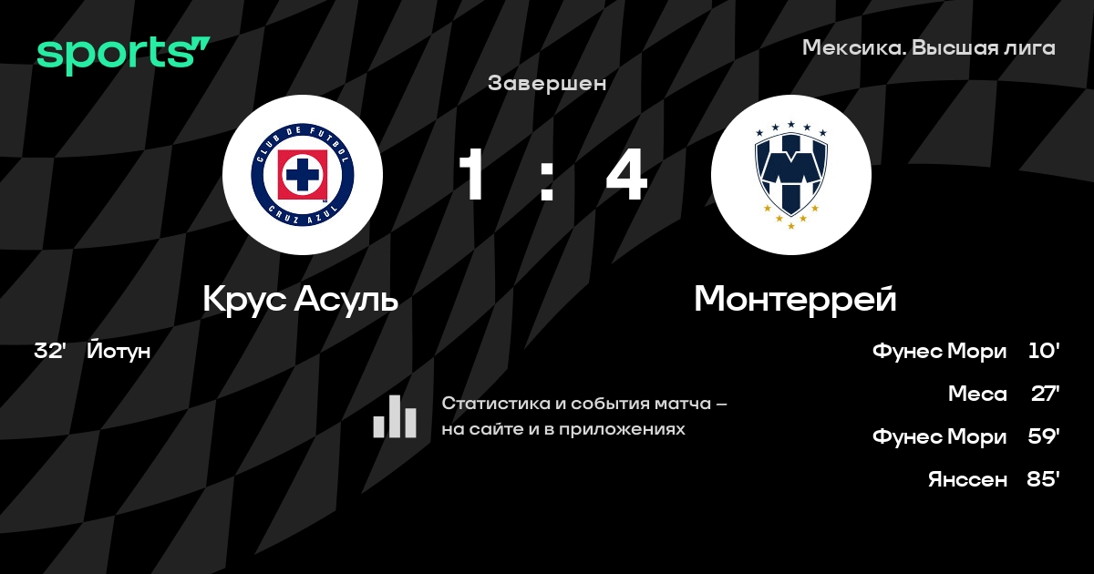 Крус Асуль – Монтеррей: Монтеррей забивает в 3 последних матчах против этого соперника