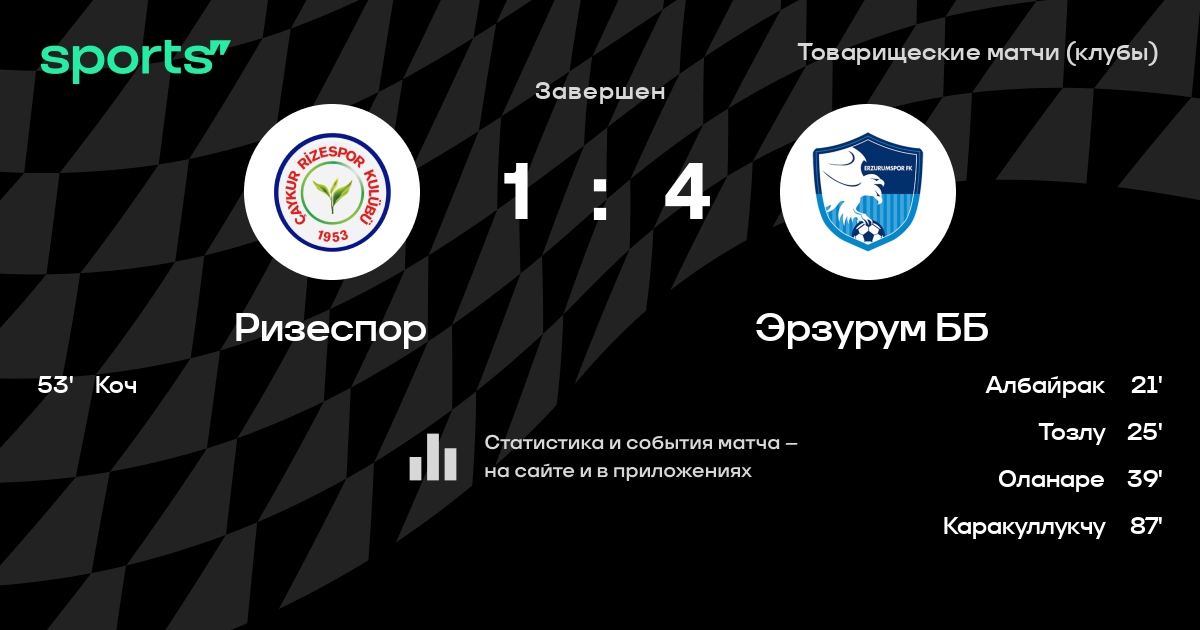 Ризеспор проигрывает в 3 последних матчах в турнире «Товарищеские матчи (клубы)»