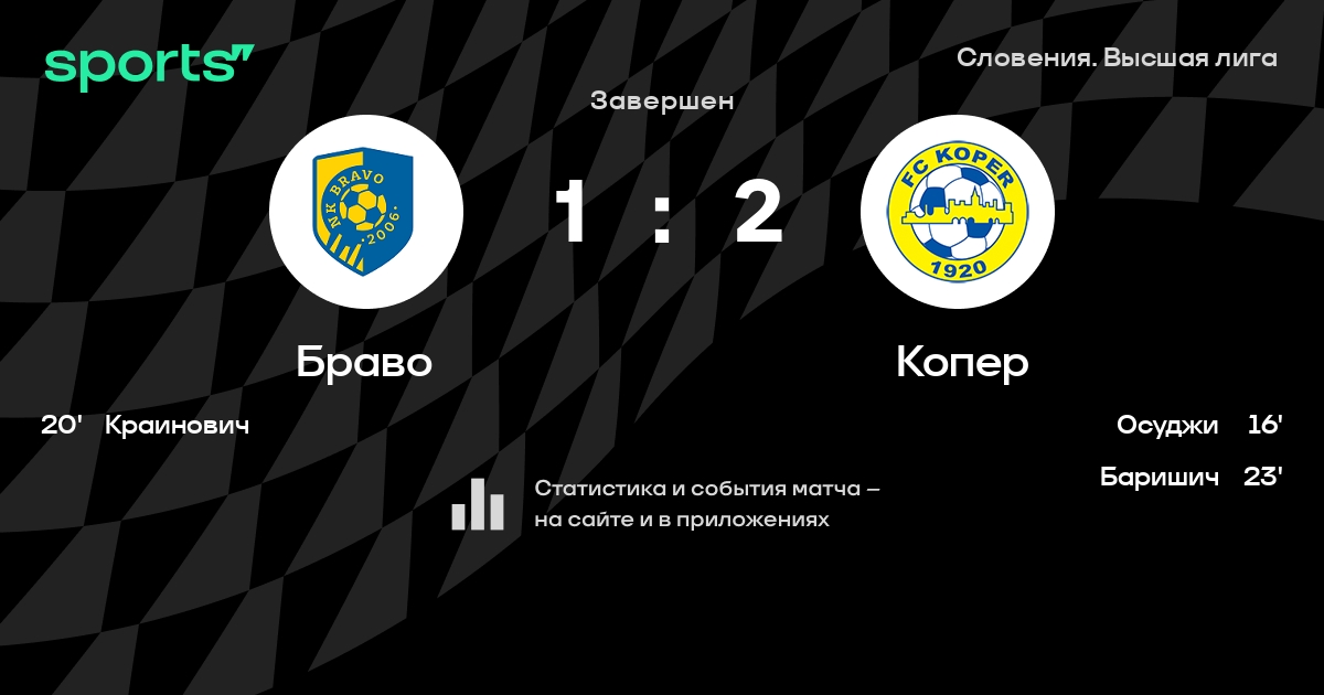 Браво – Копер: Браво не пропускает в 3 последних матчах против этого соперника
