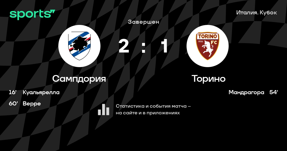 Сампдория – Торино: Сампдория не проигрывает в 8 из 10 последних матчей против этого соперника дома