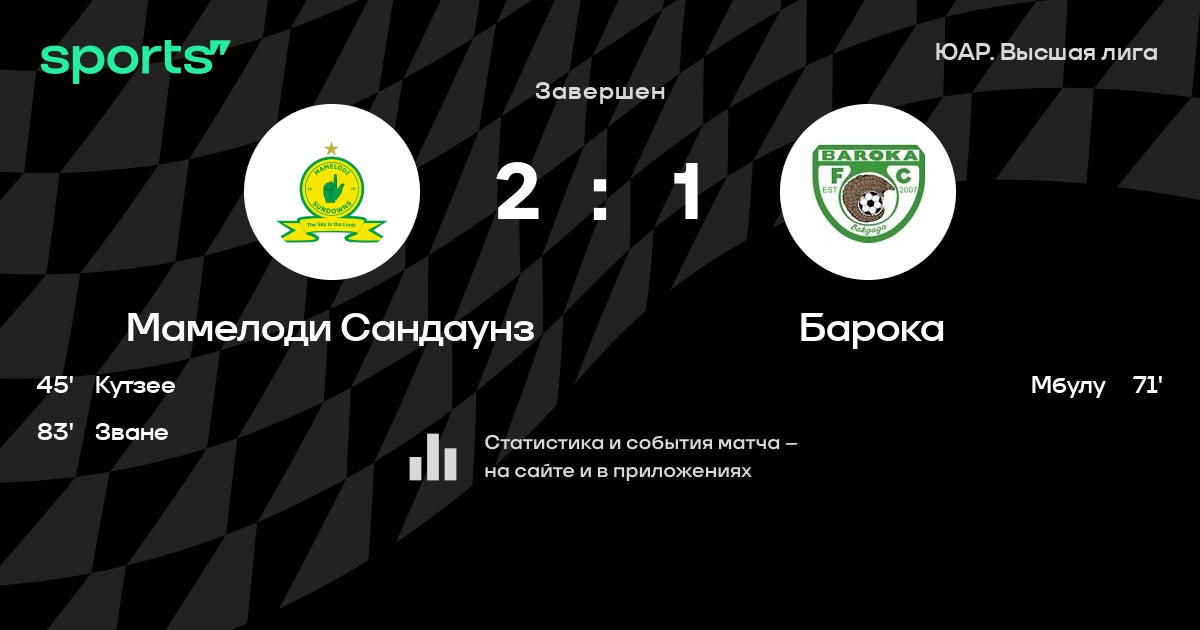 Мамелоди Сандаунз – Барока: Мамелоди Сандаунз не проигрывает в 5 из 7 последних матчей против этого соперника
