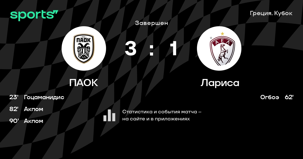 ПАОК – Лариса: ПАОК забивает в 20 последних матчах против этого соперника