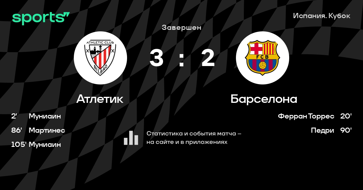 Агирресабала - Берчиче, Мартинес, Вивиан, Де Маркос - Муниаин, Весга, Дани Гарсия, Н. Уильямс - Рауль Гарсия, СансетЗапасные: Унаи Симон, Баленсиага, Капа, Лекуэ, Нуньес, Печа, Ноласкоайн, Саррага, Беренгер, Серрано, Уильямс