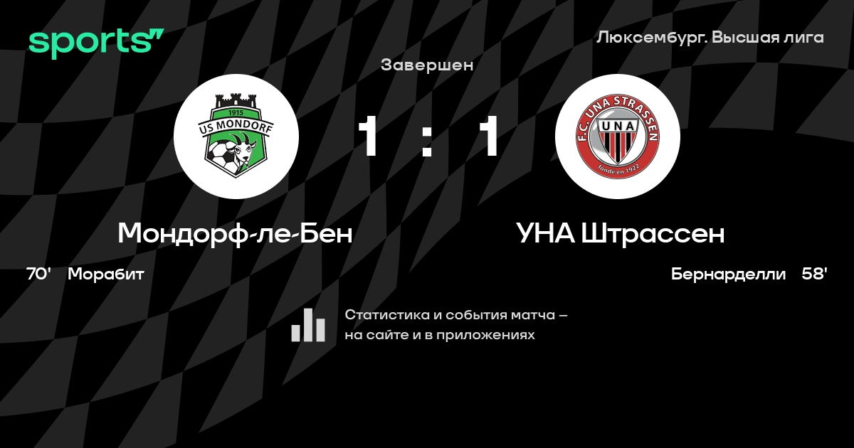 Мондорф-ле-Бен – УНА Штрассен: УНА Штрассен не проигрывает в 7 из 9 последних матчей против этого соперника