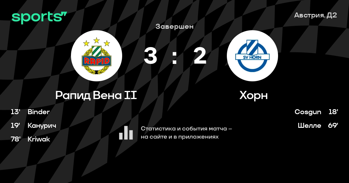 Рапид Вена II – Хорн: Хорн забивает в 8 из 10 последних матчей против этого соперника