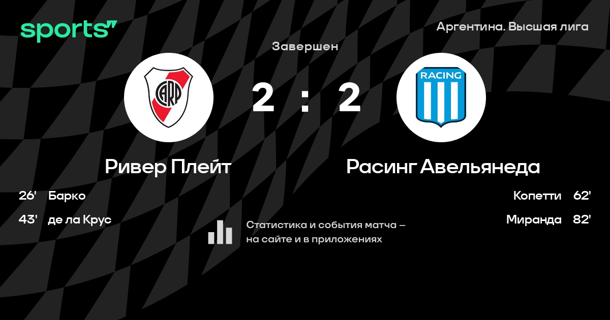 Ривер Плейт – Расинг Авельянеда: Ривер Плейт не пропускает в 6 последних матчах против этого соперника