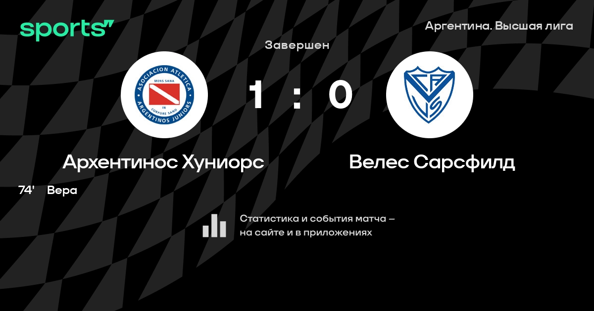 Архентинос Хуниорс – Велес Сарсфилд: Велес Сарсфилд не пропускает в 3 последних матчах против этого соперника