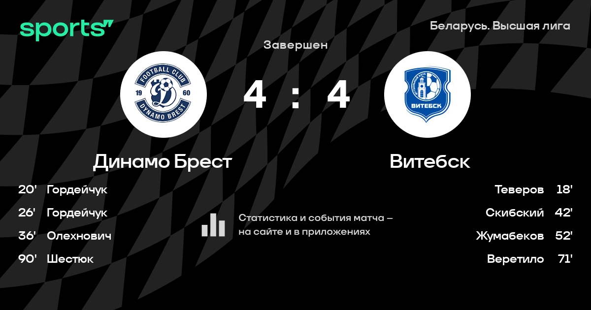 Динамо Брест – Витебск: Динамо Брест забивает в 3 последних матчах против этого соперника