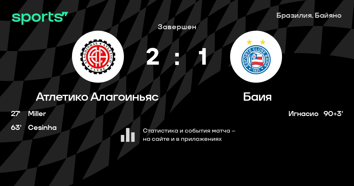 Атлетико Алагоиньяс – Баия: Баия не проигрывает в 8 из 10 последних матчей против этого соперника в турнире «Бразилия. Байяно»