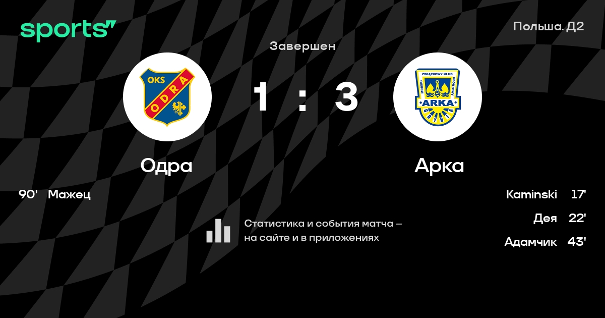 Одра – Арка: Арка не проигрывает в 6 последних матчах против этого соперника в турнире «Польша. Д2»