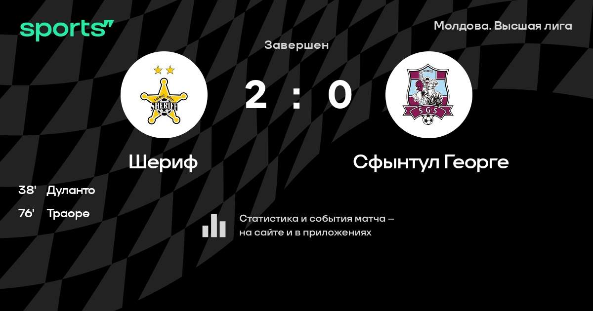 Шериф – Сфынтул Георге: Шериф не пропускает в 3 последних матчах против этого соперника