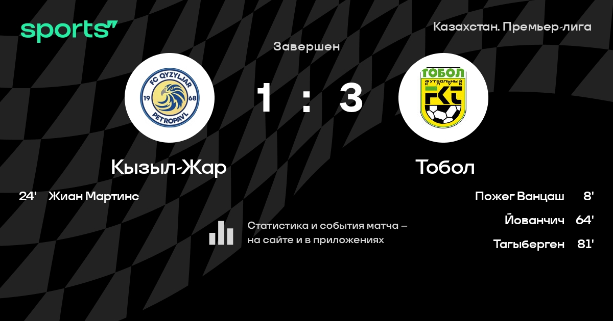 Кызыл-Жар – Тобол: Тобол не пропускает в 8 последних матчах против этого соперника