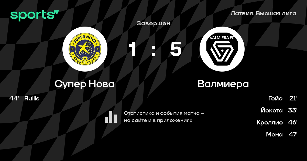 В последних 5 играх Супер Нова забивает в среднем 0.00 гола за игру