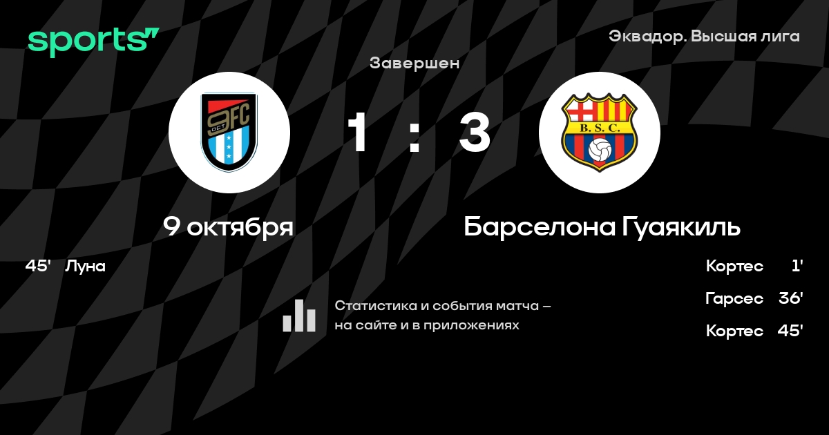 9 октября – Барселона Гуаякиль: Барселона Гуаякиль забивает в 4 последних матчах против этого соперника