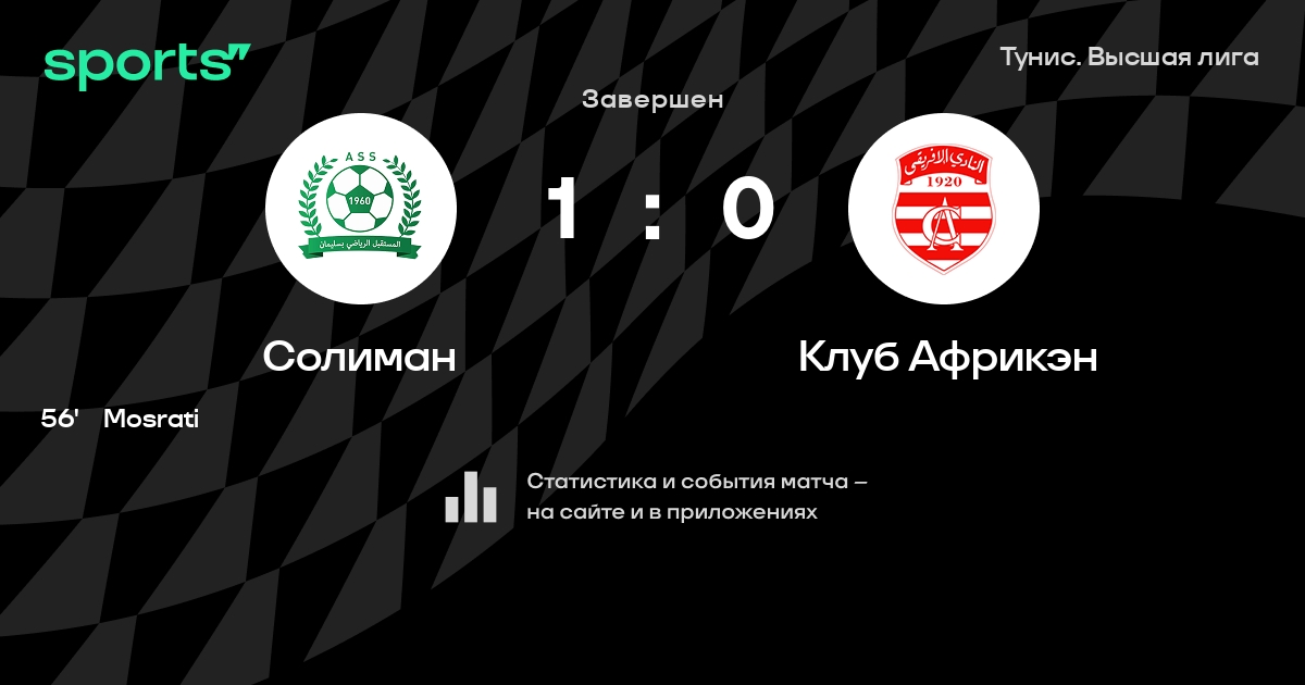 Солиман – Клуб Африкэн: Клуб Африкэн побеждает в 3 последних очных матчах