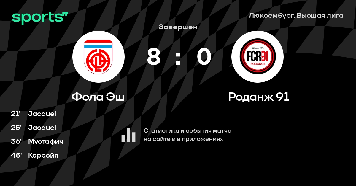 Фола Эш – Роданж 91: Фола Эш не проигрывает в 5 из 6 последних матчей против этого соперника