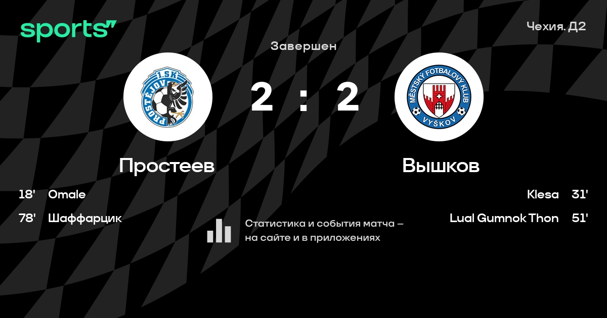 Вышков не выигрывает в 5 последних матчах в гостях в турнире «Чехия. Д2»