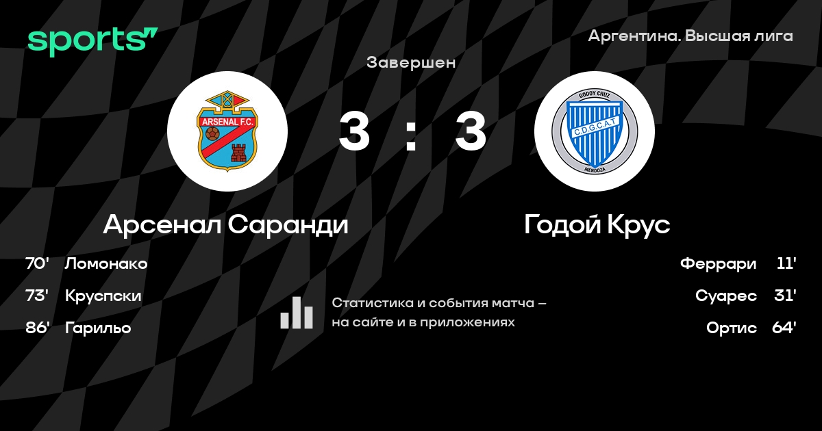 Арсенал Саранди – Годой Крус: Годой Крус не проигрывает в 5 из 7 последних матчей против этого соперника