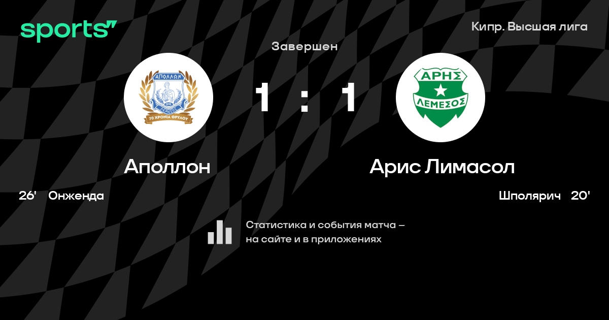 Аполлон – Арис Лимасол: Аполлон не проигрывает в 9 из 11 последних матчей против этого соперника в турнире «Кипр. Высшая лига»