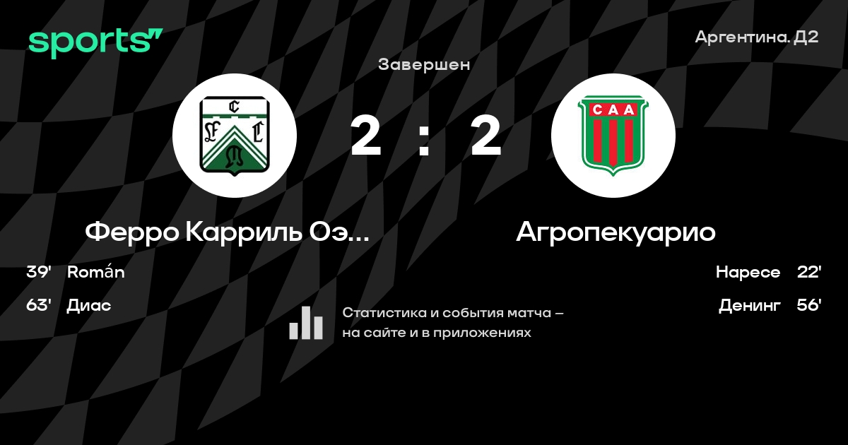 Результат прошлой игры в турнире «Аргентина. Д2»: Институто – Ферро Карриль Оэсте 3:2. После 7 туров Ферро Карриль Оэсте набирает 6 очков и занимает 32 место в турнире. Ферро Карриль Оэсте не может выиграть в 6 последних матчах в рамках турнира «Аргентина. Д2». В 3 последних матчах в турнире «Аргентина. Д2» Ферро Карриль Оэсте обязательно забивает. Ферро Карриль Оэсте пропускает в 3 последних матчах в турнире «Аргентина. Д2». В последних 5 играх Ферро Карриль Оэсте забивает 5 голов. В последних 5 играх Ферро Карриль Оэсте пропускает 7 голов.