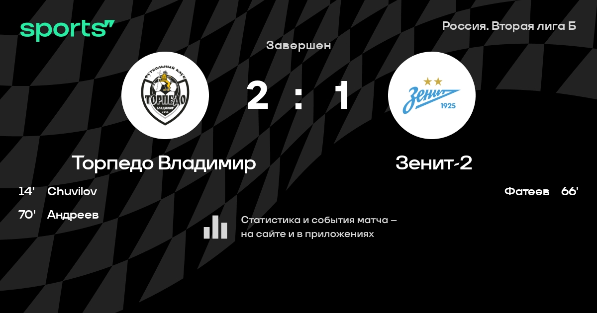 Торпедо Владимир – Зенит-2: Зенит-2 забивает в 6 последних матчах против этого соперника
