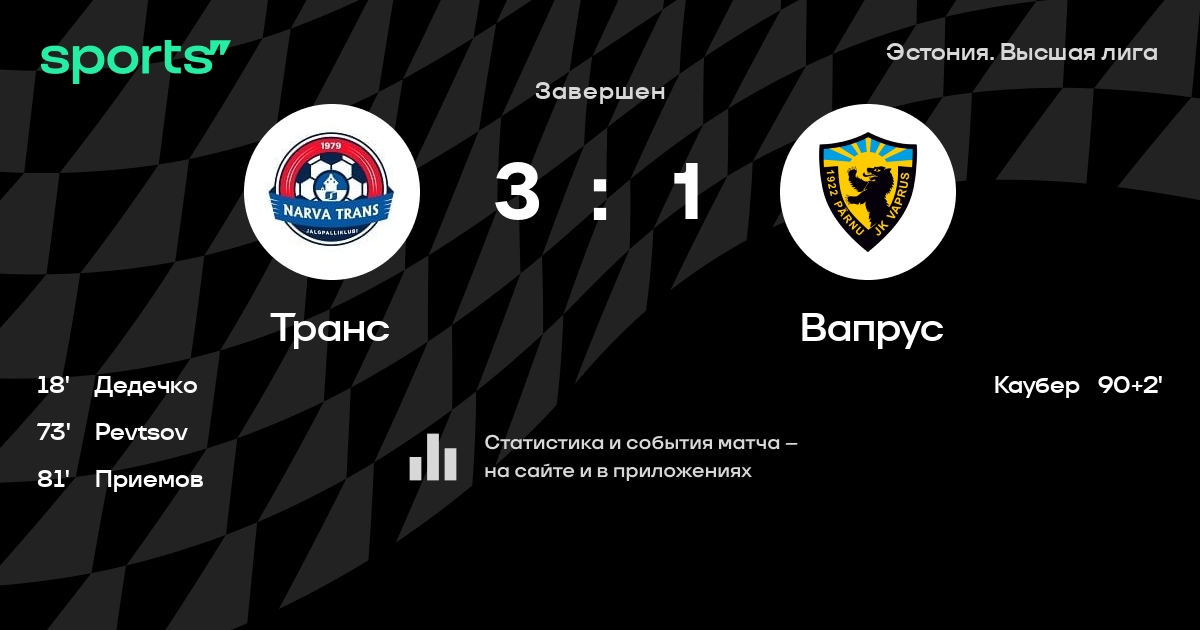 Транс – Вапрус: Транс не проигрывает в 10 из 11 последних матчей против этого соперника