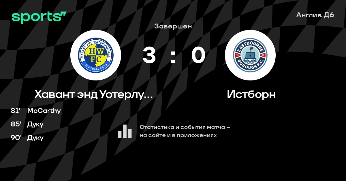 Хавант энд Уотерлувилл – Истборн: Хавант энд Уотерлувилл забивает в 12 из 14 последних матчей против этого соперника