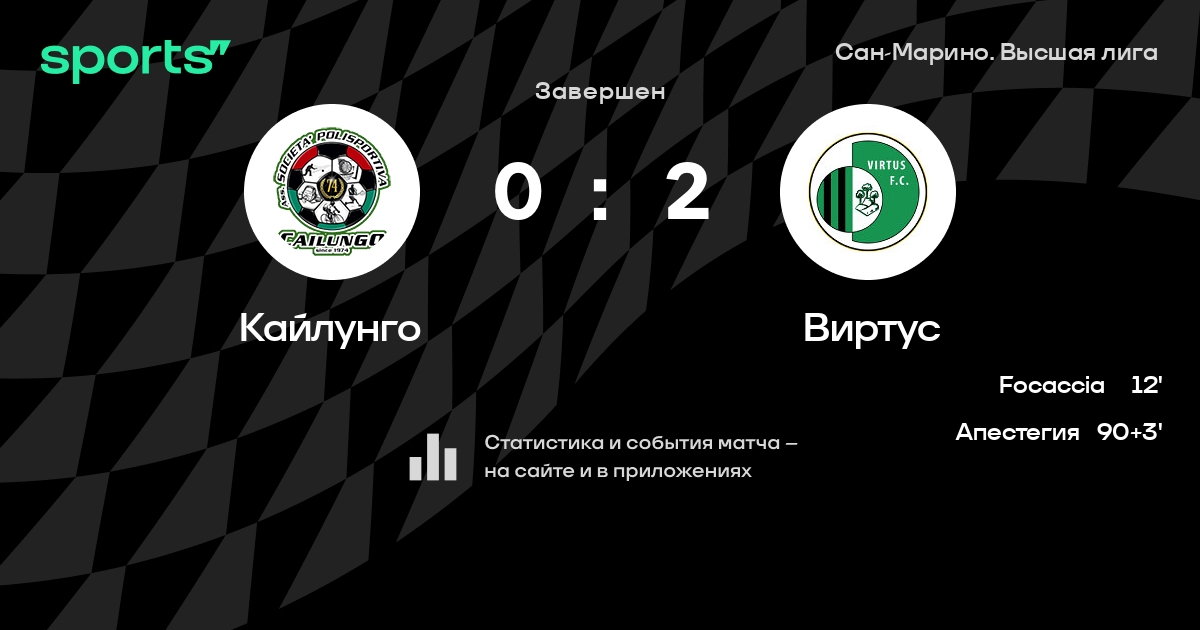 Кайлунго – Виртус: Виртус не проигрывает в 7 из 9 последних матчей против этого соперника в гостях в турнире «Сан-Марино. Высшая лига»