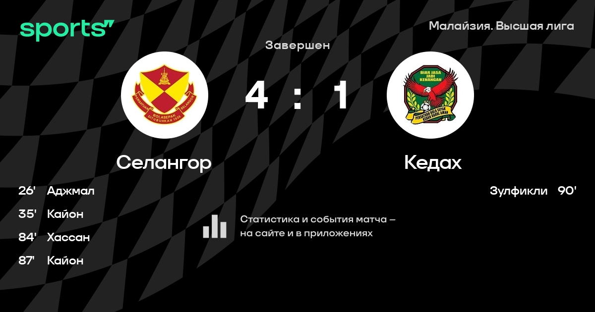 Селангор – Кедах: Кедах забивает в 14 последних матчах против этого соперника