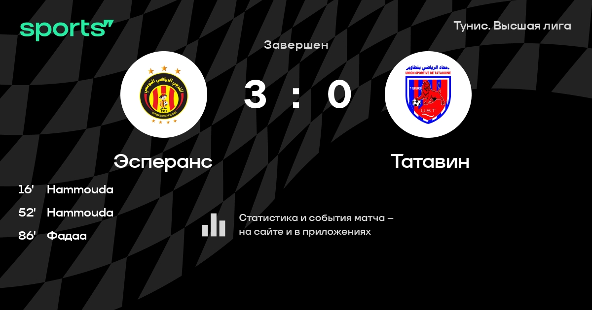 Эсперанс – Татавин: Эсперанс забивает в 7 последних матчах против этого соперника