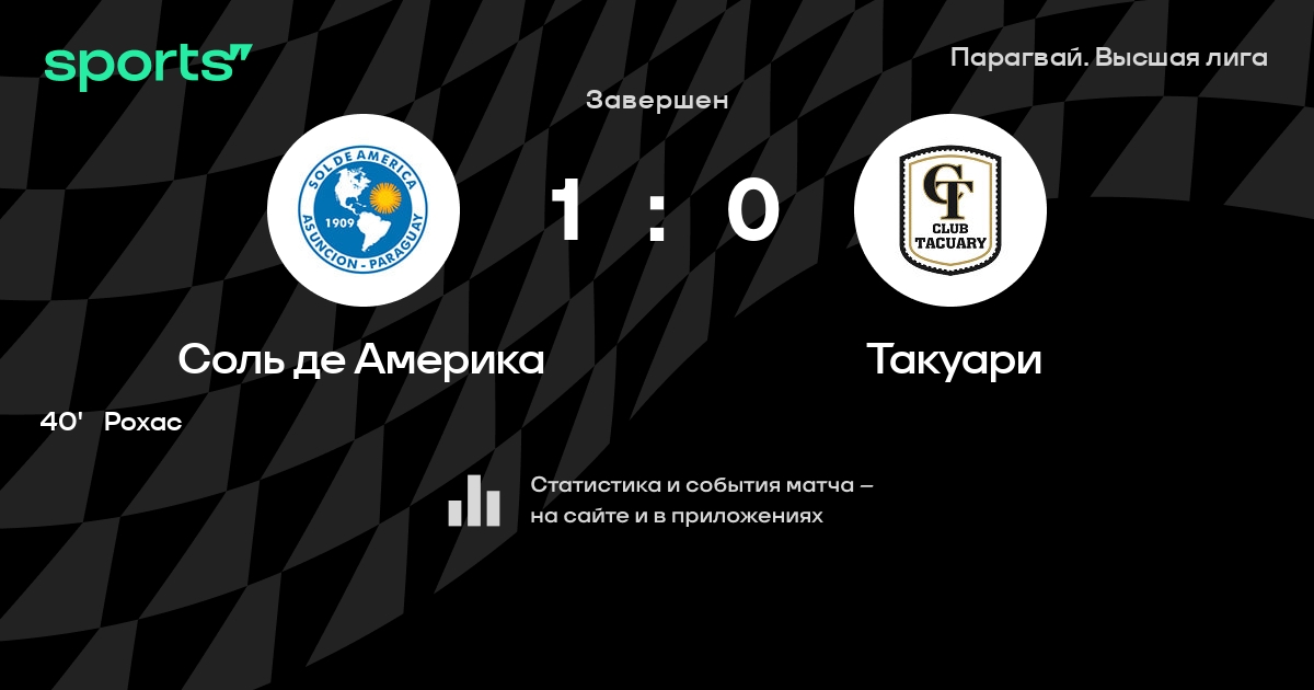 Соль де Америка – Такуари: Соль де Америка не проигрывает в 7 из 9 последних матчей против этого соперника